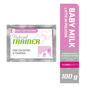 Latte in polvere completo Natural Trainer per cuccioli e gattini 0-2 mesi 100g. Formula con colostro e taurina. Sostituisce latte materno. Vitamine e minerali completi. Facilmente digeribile. Rapida preparazione. Ideale allattamento artificiale.