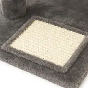 La struttura si sviluppa su più livelli e prevede una cuccia aperta, una cuccia chiusa ed un palo tiragraffi in sisal naturale per tirare le unghie