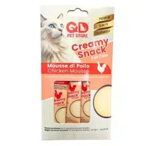 Snack Cremoso al Salmone è una mousse complementare per gatti adulti con salmone al 28%, taurina e FOS prebiotici. Alta umidità per l’idratazione quotidiana, con Vitamina E antiossidante. Disponibile in formato da 20 e 40 stick.