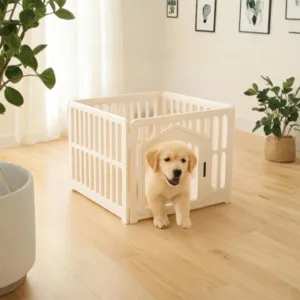Questo recinto offre uno spazio sicuro e versatile per cani di piccola taglia e cuccioli.