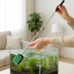 La parte interna, morbida e sicura, non graffia il vetro, mentre l’impugnatura ergonomica assicura una presa comoda e antiscivolo. Ideale per vetri di piccoli e medi acquari, garantisce un movimento fluido e silenzioso che non disturba i pesci.
