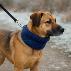 Scalda collo per cani in maglia elastica, colore blu. Design tubolare senza chiusure per vestizione rapida. Protegge dal freddo e dal vento. Disponibile in 2 misure: S-M (15-30cm) e M-L (30-50cm). Materiale poliestere morbido e traspirante. Ideale durante le passeggiate invernali.