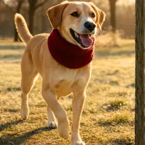 Scalda collo per cani in maglia elastica, colore rosso vivace. Alta visibilità per sicurezza durante passeggiate con scarsa illuminazione. Protegge dal freddo intenso cani con sottopelo scarso. Disponibile in 2 misure: S-M (15-30cm) e M-L (30-50cm). Materiale poliestere morbido e lavabile.