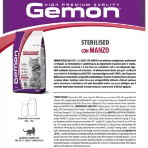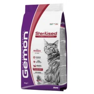 Gemon Sterilised per gatti adulti sterilizzati, crocchette High Premium Quality Made in Italy con manzo carne fresca (8%), FOS, MOS e olio di salmone per gatti adulti sterilizzati. Senza coloranti artificiali. 2kg.