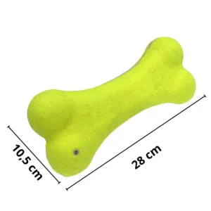 Gioco osso sonoro per cani 28cm in feltro con squeaker interno. Galleggia in acqua, massaggia gengive e pulisce denti naturalmente. Colore giallo lime visibile. Resistente, è ideale per cani taglia media e grande. Ideale riporto, giochi acquatici, dentizione cuccioli. Texture feltro per igiene dentale. Divertimento e salute in un solo giocattolo.