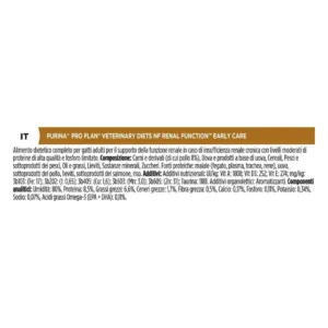 Pro Plan Renal Function Early Care è un alimento dietetico completo e bilanciato per gatti adulti (>1 di età), un alimento veterinario specificamente realizzato per offrire supporto alla funzione renale in caso di insufficienza renale cronica.