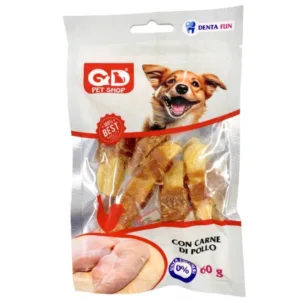 Denta Fun Rotolini sono snack complementari low fat per cani adulti con pollo al 30% e patata dolce al 60%. Senza zuccheri e coloranti artificiali. Ideali per cani attenti alla linea — 60g.